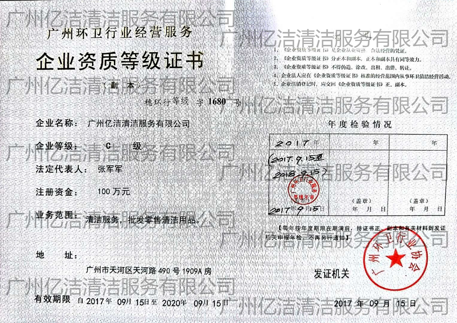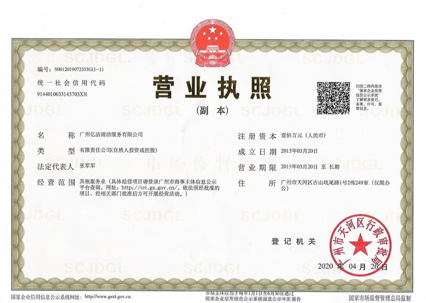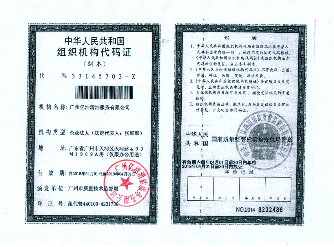 廣州億潔清潔服務(wù)有限公司是經(jīng)廣州市工商行政管理局批準(zhǔn)成立的(注冊資本:100萬元人民幣)。具有獨立法人資質(zhì)。公司成立2015年,公司具備完善的管理體系和高素質(zhì)管理隊伍,擁有特種技術(shù)人員33名,保潔服務(wù)人員上萬名,覆蓋廣州市,能及時調(diào)配并快速投入高效運行。我們的每個員工都經(jīng)過公司的嚴(yán)格篩選,嚴(yán)格培訓(xùn),定期培訓(xùn)后持證上崗以保證服務(wù)品質(zhì),保障客戶的權(quán)利,利益,形象等不受損失。 廣州億潔清潔公司是一家設(shè)備齊全,技術(shù)強(qiáng)大的綜合型清潔服務(wù)公司,為客戶提供完善服務(wù)尊定了堅定的基礎(chǔ)。 司于2010年全面推行了ISO9001質(zhì)量管理體系認(rèn)證和ISO14001國際環(huán)保體系認(rèn)證。先后獲得廣州高層建筑外墻清洗維修作業(yè)【安全資質(zhì)證書】、【廣州環(huán)衛(wèi)企業(yè)等級證書C級資質(zhì)】、廣州疾控中心頒發(fā)的【四害消殺服務(wù)資質(zhì)證】、【空氣治理A級資質(zhì)】、中國石材協(xié)會頒發(fā)的【石材資質(zhì)B級資質(zhì)】等。 廣州億潔清潔服務(wù)有限公司致力于打造專業(yè)、實惠、靠譜的保潔服務(wù)公司,把專業(yè)的事情交給專業(yè)的我們,您放心! 億潔清潔服務(wù)項目: 廣州保潔服務(wù):新建樓宇、別墅、酒店、醫(yī)院、辦公樓、賓館、企事業(yè)單位廠房竣工后開荒及裝修后精細(xì)保潔.工程保潔服務(wù)。 廣州物業(yè)托管:為廣州市各大企事業(yè)單位、賓館、政府機(jī)關(guān)、小區(qū)物業(yè)、酒店及廠房提供專業(yè)化保潔、園林、設(shè)施維護(hù)等管理服務(wù)。 廣州高空作業(yè):高空玻璃幕...[詳情]